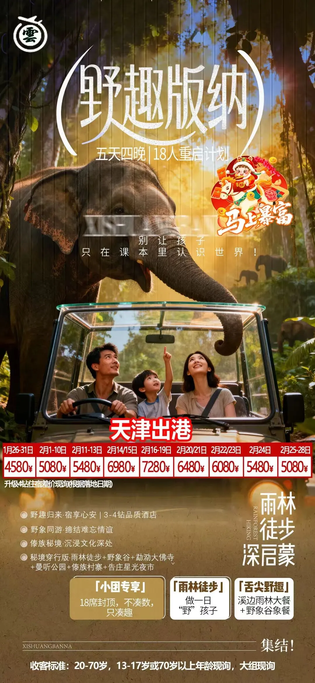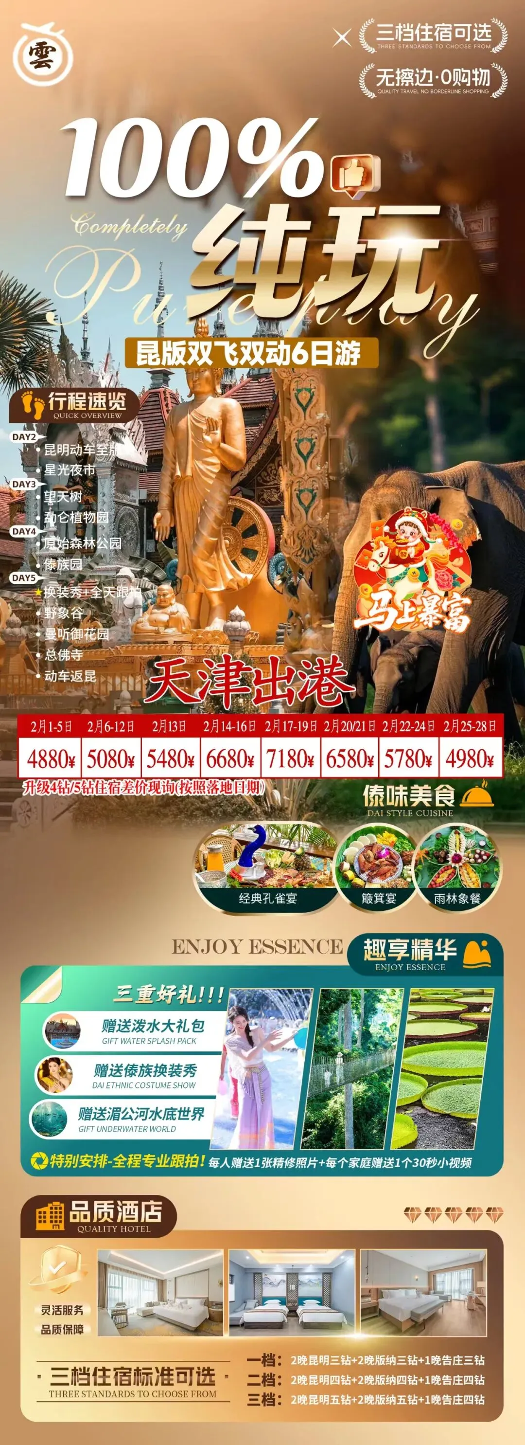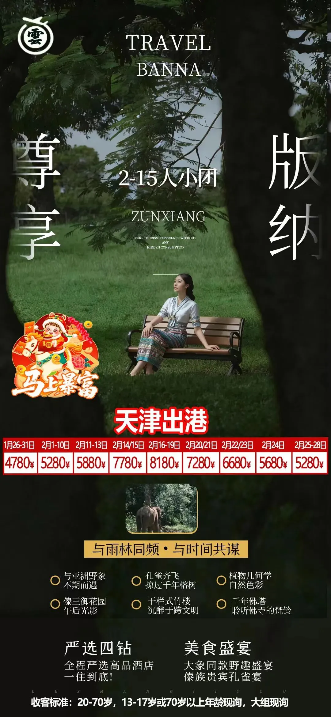 [烟花]【版纳精致小包】 [礼物]【纯玩一单一团】 原来最好的旅行是: 不用等集合,不用赶时间,拒绝走马观花 把版纳的阳光揉进清晨,在热带听雨林呼吸 夜晚还可以感受星光夜市的人间烟火 没有拥挤的催促,只有刚好的自由和美好镜头下的记录,连风的速度都跟着慢下来,自由的刚刚好! #一单一团随停随走#自由随性慵懒