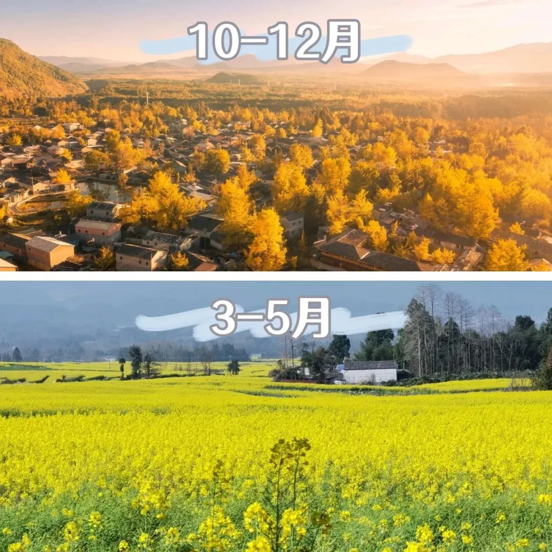 最佳旅游季(春秋): 3-5月春暖花开(油菜花季),9-11月天高气爽(银杏金黄),舒适宜人。