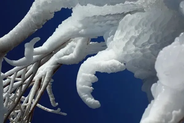 坐落于昆仑山北麓的于田龙湖旅游区,冬日里褪去尘嚣,展现出塞外湿地的另一重风骨。步入景区,最先迎接您的便是那一树树的冰晶奇观。湖畔的沙枣、红柳与胡杨,每一根枝条都被晶莹的冰甲包裹。晨光初照时,整片林子仿佛被点燃——那不是火焰的热烈,而是水晶的清辉在枝头流转跳跃。近看,每根冰挂里都封存着植物的纹理,有的如流苏垂落,有的似利剑指天,在蓝天下勾勒出千万道光的轨迹。