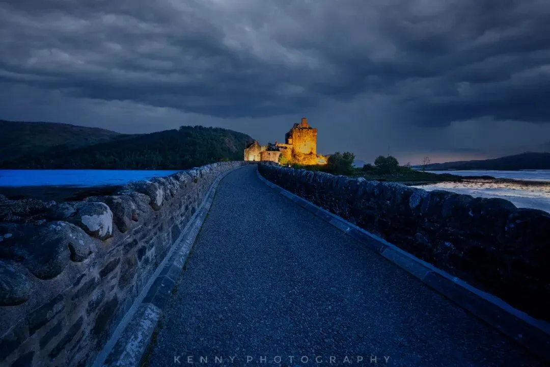 蓝调下的Eilean Donan Castle在水面倒影的加持下,成就了摄影师的经典画面。