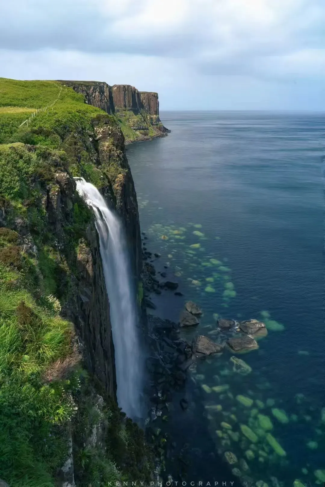 难得的好天气,开车环天空岛途中拍摄下天空岛明信片之一的Mealt Falls瀑布。