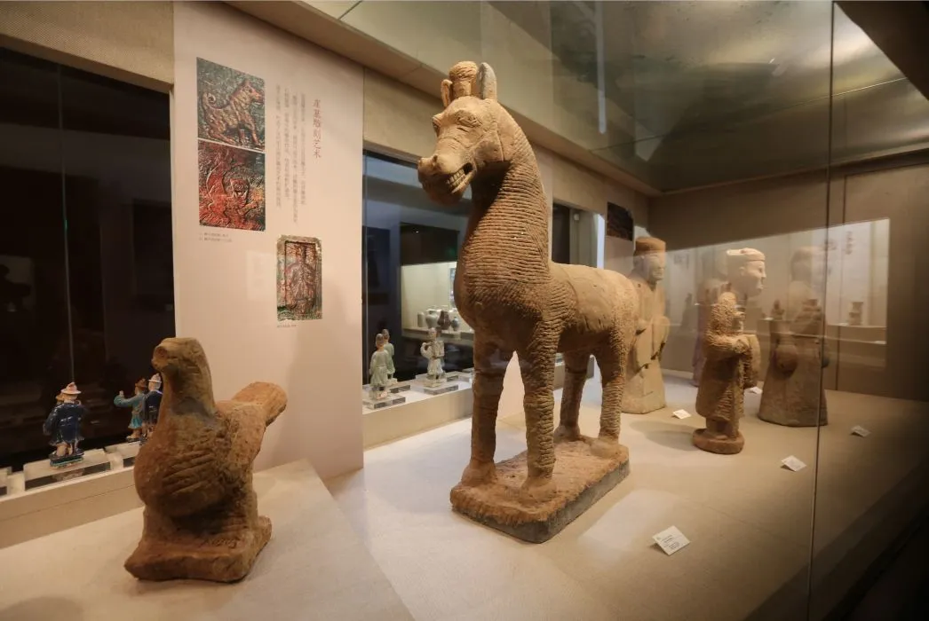 博物馆由乐山大佛陈列馆、陶瓷石刻艺术馆和书画艺术馆三个展厅组成,有近两百件国家珍贵文物,是一座反映乐山城市历史与文化的艺术博物馆。