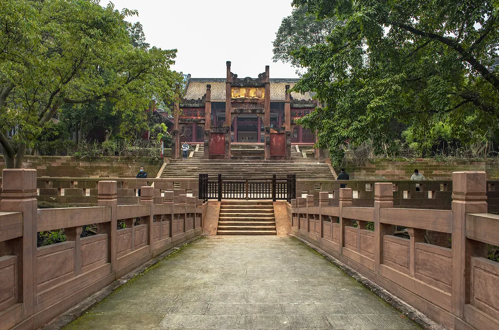 乐山文庙始建于唐高祖武德年间,是祭祀孔子的礼制性建筑。乐山文庙占地面积约11200平方米,建筑面积约3600平方米,有泮池、棂星门、大成殿、崇圣祠等建筑。