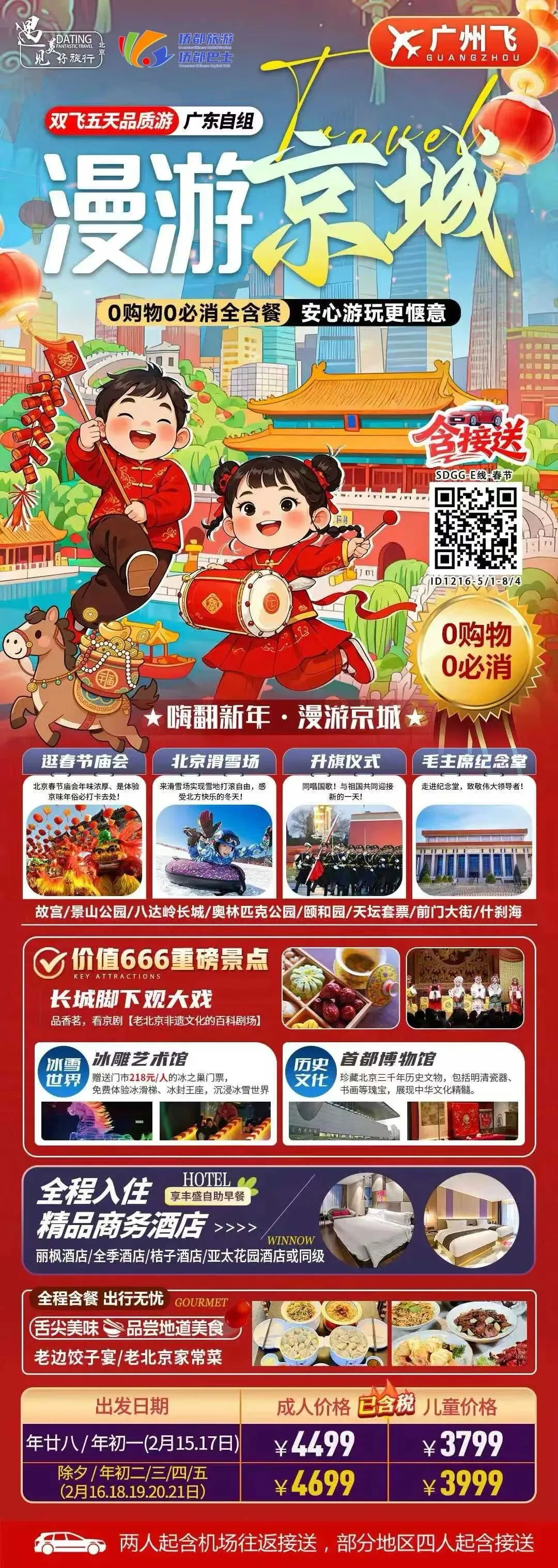 🧨《漫游京城》双飞5天(珠海/深圳6天)