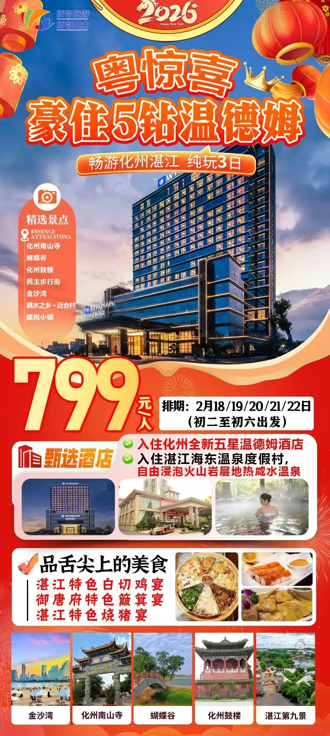 🎉【春节自组】畅玩化州湛江、壕住五钻温德姆纯玩3天🎉