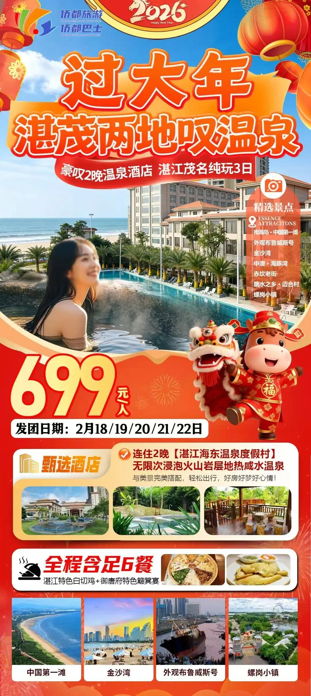 🎉【春节自组】茂名湛江两地叹温泉过大年纯玩3天🎉