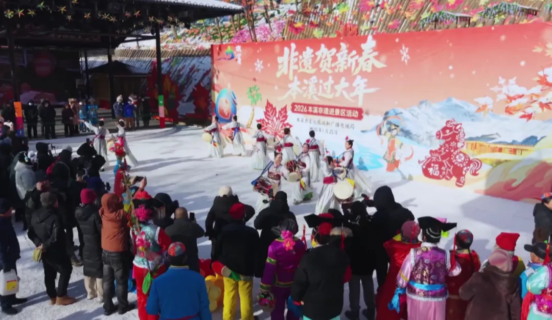 1月25日,“非遗贺新春 本溪过大年”——2026本溪非遗进景区暨九九消费季活动在小市一庄景区举行。活动以“非遗+美食+冰雪”为核心业态,汇聚涵盖表演艺术、手工技艺、传统医药、饮食文化等类别的38个非遗项目,通过场景化搭建、体验式互动、融合型呈现的创新模式为市民与游客打造了一场集观赏、体验、消费于一体的新春文化盛宴。
