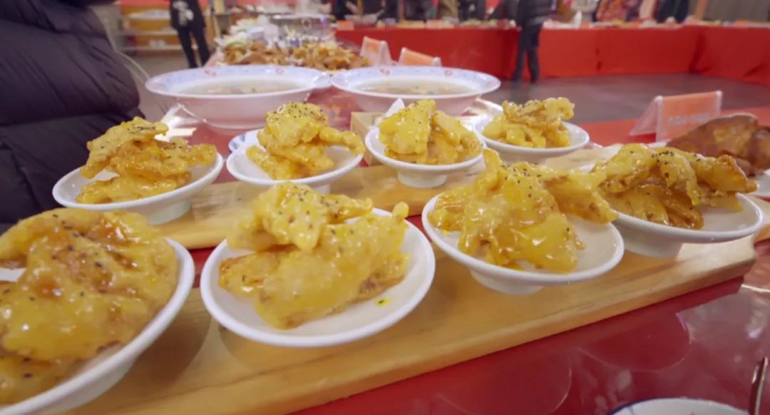 非遗美食品鉴区汇集了来自两县四区的30余道代表性非遗美食及特色风味菜品。本溪县羊汤、长宽猪蹄、满族八大碗等美食香气四溢、热气腾腾,现场同步播放非遗美食专题片,详细解读每道美食背后的制作技艺与地方典故,让游客从风味口感、传承脉络、文化内涵等多个维度,深度感受非遗美食的独特魅力。