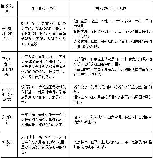一、天山天池必打卡景点全解析