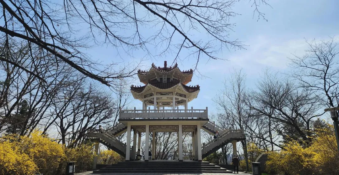 锦江山公园是丹东人自己待的地方,不是给游客专门弄的景区,春节去能看到本地人带着孩子在那遛弯,老人在那锻炼,这种本地生活的真实样子反而是最值得看的,公园里有个锦江山塔,爬上去能俯瞰整个丹东城区和鸭绿江,能看清楚这座城市是怎么沿着江边生长的,怎么和对岸的新义州形成对照的,这个角度比任何攻略都管用。