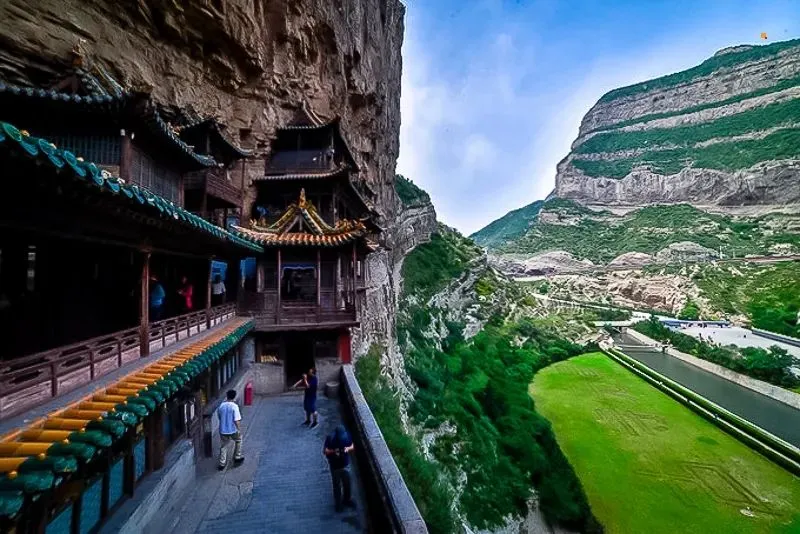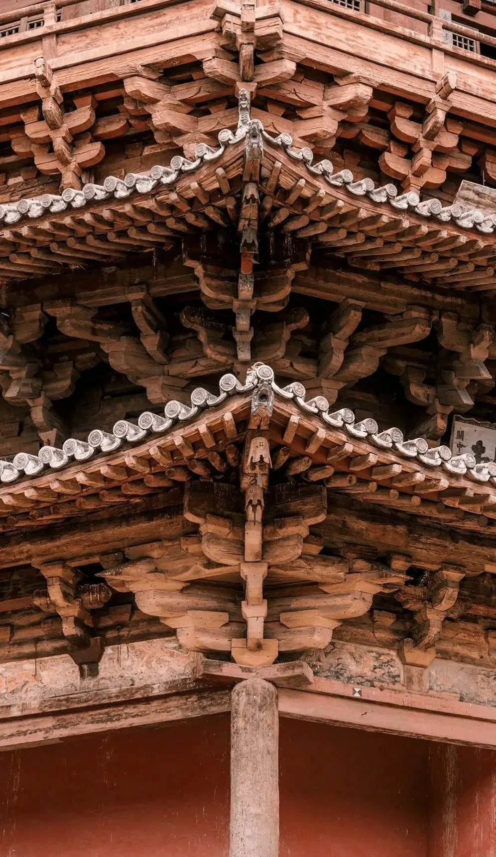 全寺为木质框架式结构,有殿琮楼阁40 间,其实悬空寺不大,最值得惊叹的是它依靠榫接结构,嵌入崖内而不倒。