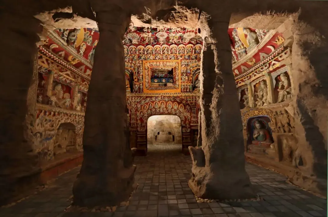 云冈石窟位于山西省大同市以西16公里处的武周山南麓,依山而凿,东西绵延约一公里,气势恢弘,内容丰富。现存主要洞窟45个,大小窟龛252个,造像5万1千余尊,代表了公元5至6世纪时中国杰出的佛教石窟艺术。其中的昙曜五窟,布局设计严谨统一,是中国佛教艺术第一个时期的经典杰作。