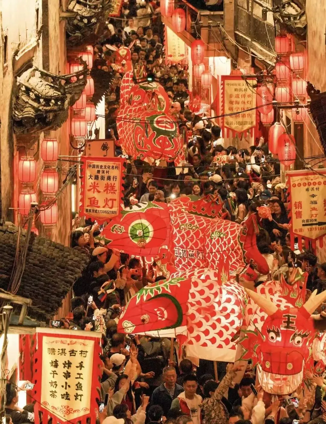 汪满田鱼灯巡游是歙县的重头戏,正月初二至十五,千盏鱼灯在古村中游动,宛如星河落地,场面震撼;徽州鱼灯非遗工坊开放体验,游客可亲手扎制鱼灯,感受传统工艺魅力;宏村、西递古村举办新春民俗节,舞龙舞狮、徽州民歌表演轮番上演。