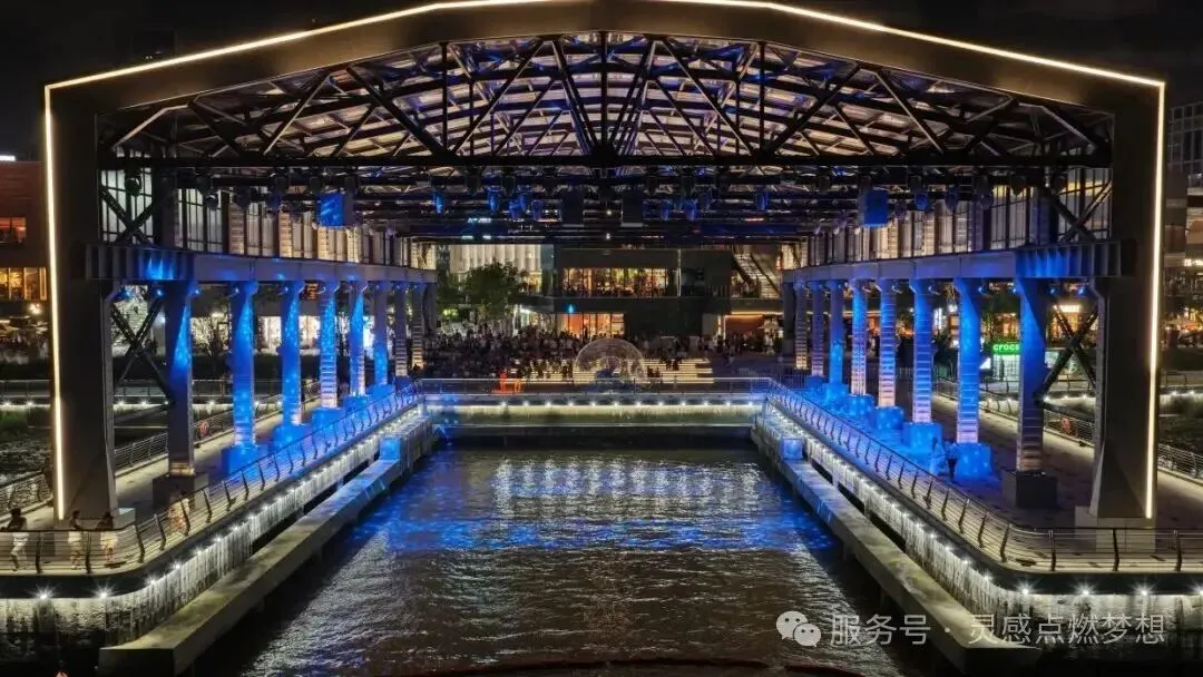 GATE M 西岸梦中心前身是亚洲最大水泥厂——龙华水泥厂。它成立于1920年,至今已拥有超百年历史。所生产的“象牌”水泥,先后用于建设上海海关大楼、国际饭店等全国多个地标建筑。船坞码头前身为上海水泥厂的水运停靠设施,用于装卸原材料和成品水泥。现在,这座船坞基本按原样保留,但功能被完全置换,转型为水岸秀场,成为展现前沿光影艺术和科技的“画布”。每到周末,船坞变身舞台,上演各种快闪演出,吸引市民游客纷至沓来。