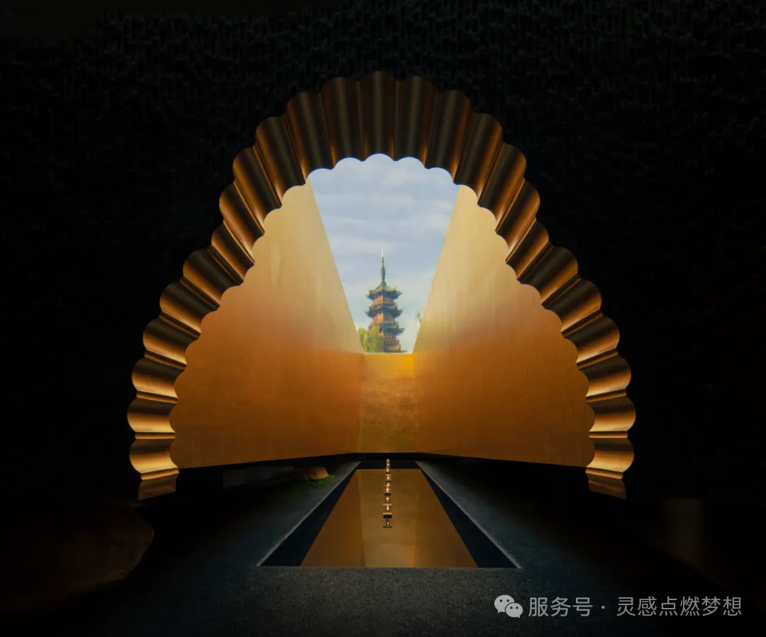 塔影空间坐落于上海徐家汇龙华古韵片区,毗邻龙华古寺,隐于塔影广场水域之下。这里藏书2000余册,设座位50个,是集阅读、休闲、艺术展示与文化传播于一体的静谧养心之所。空间巧借阳光、金箔、古塔与水池水波纹的互动,打造出水下观塔的独特体验。古塔光影随四时、天气变幻,虚实交织,景致时刻不同。其以中式美学为骨,处处暗藏中华建筑与文化智慧,尽显文雅韵味。