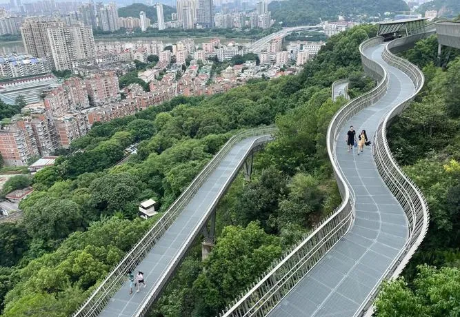 福道是福州这几年建的城市森林步道,架在半空中穿过好几个公园,这个设计一开始很多人不理解,觉得在地上修路不就行了为什么要架那么高,但你真走一次就明白了,把步道架高是为了不破坏原有的植被和地形,让人能从树冠层的高度看城市看森林,这种设计思路反映的是福州这个城市对生态的重视程度,它不是嘴上说说环保,是真的在城市规划里把生态放在优先级很高的位置。