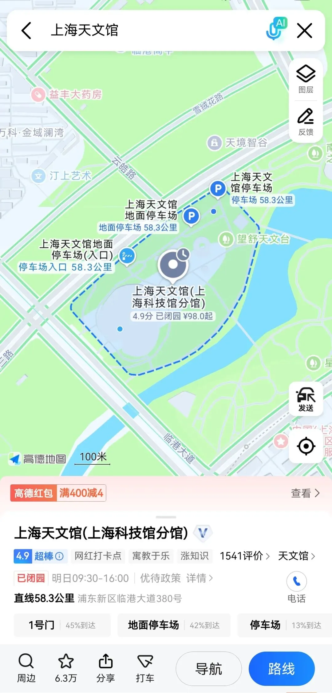 - 位置:天文馆内设有室外收费停车场