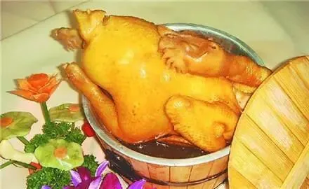 开封桶子鸡是开封有名的小吃,以鸡为主料,颜色十分诱人,以其色泽鲜黄,咸香嫩脆,略透荷香。