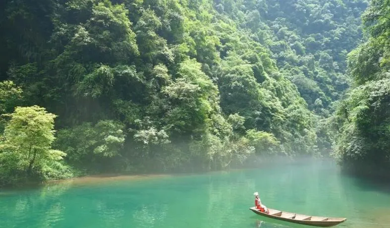 屏山峡谷这个地方,火起来是因为一张照片,船浮在水上,水清到看不见,像是船悬在空中,很多人就冲着这个画面去的,但你真到了现场会发现,这个清不是装出来的,是这条河本来就这样。水源都是山泉,没有污染,河床是石头,没有泥沙,所以水能清成这样,这种清不是偶然,是地理环境决定的。