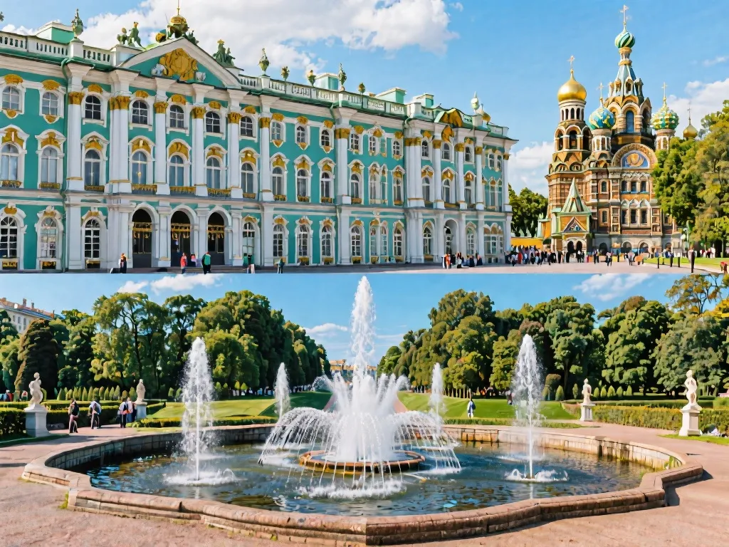 冬宫和艾尔米塔什博物馆是世界四大博物馆之一,曾是叶卡捷琳娜二世的私人宅邸,馆里藏着达·芬奇《圣母像》、伦勃朗《浪子回头》等珍品,建议提前规划路线,不然展品多得逛不完。彼得霍夫宫被称为“俄罗斯的凡尔赛宫”,华丽的喷泉群和花园是招牌,夏季喷泉节时,37座雕像、29座浮雕和64个喷泉组成的水景特别震撼。救世主滴血大教堂是圣彼得堡最地道的俄式建筑,金色洋葱顶在阳光下亮闪闪的,内部满是圣经主题的马赛克装饰,华美至极。圣以撒大教堂是俄罗斯北方最大的教堂,101.5米高的圆顶铺着100公斤纯金,爬上去能俯瞰整座圣彼得堡。彼得保罗要塞是圣彼得堡的发源地,由彼得大帝亲自奠基,里面有彼得保罗大教堂、钟楼、造币厂,沿着城垛散步还能看涅瓦河的好风景。涅瓦大街是当地最繁华的街道,连着众多教堂、商店、餐厅和文化场馆,白天人来人往,夜晚灯火璀璨,能真切感受当地的都市节奏。