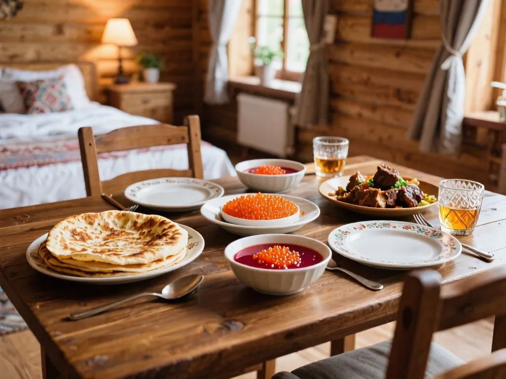 美食推荐这几样:俄式薄饼像可丽饼,甜咸馅料都能搭;红菜汤加酸奶油后风味更浓郁;鱼子酱配伏特加或黑面包是经典吃法;俄式炖肉用牛肉和奶油慢炖,醇厚香浓。住宿的话,追求舒适可选Domina Pulkovo Hotel这类豪华酒店,想性价比高又有特色,Mini-hotel和Boutique Hotel这类精品民宿很合适。