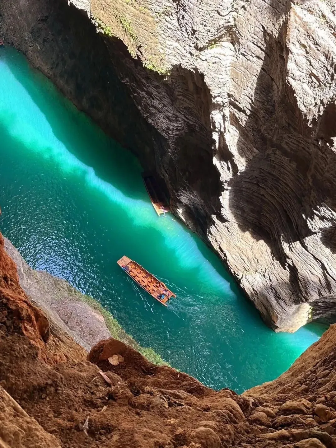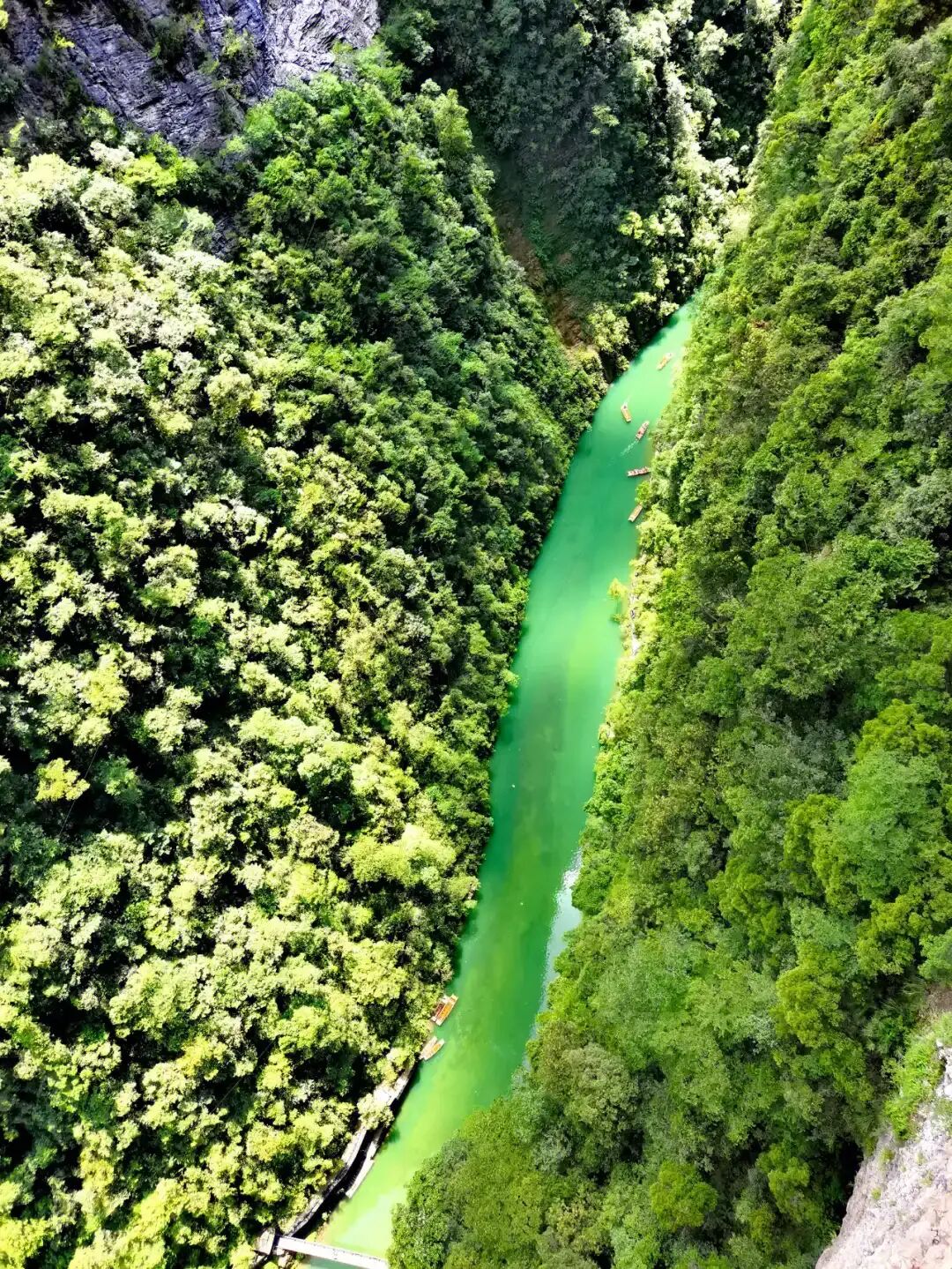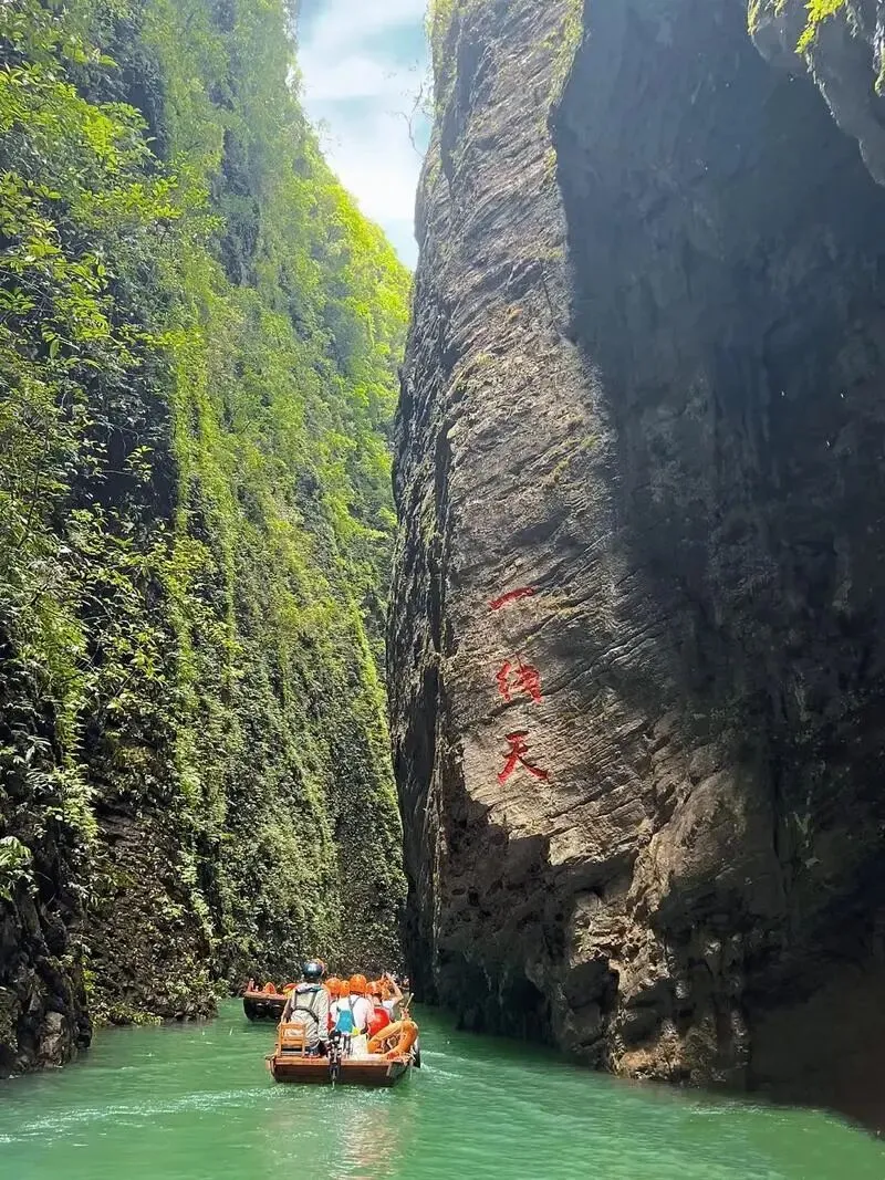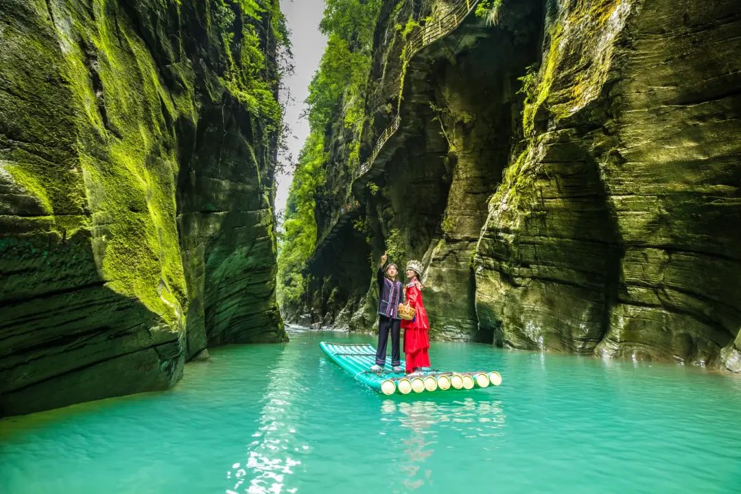 特色:因悬浮船照片爆红网络,被誉为“中国仙本那”。峡谷深百余丈,河水清澈如翡翠,小船行于其上宛如悬浮空中。