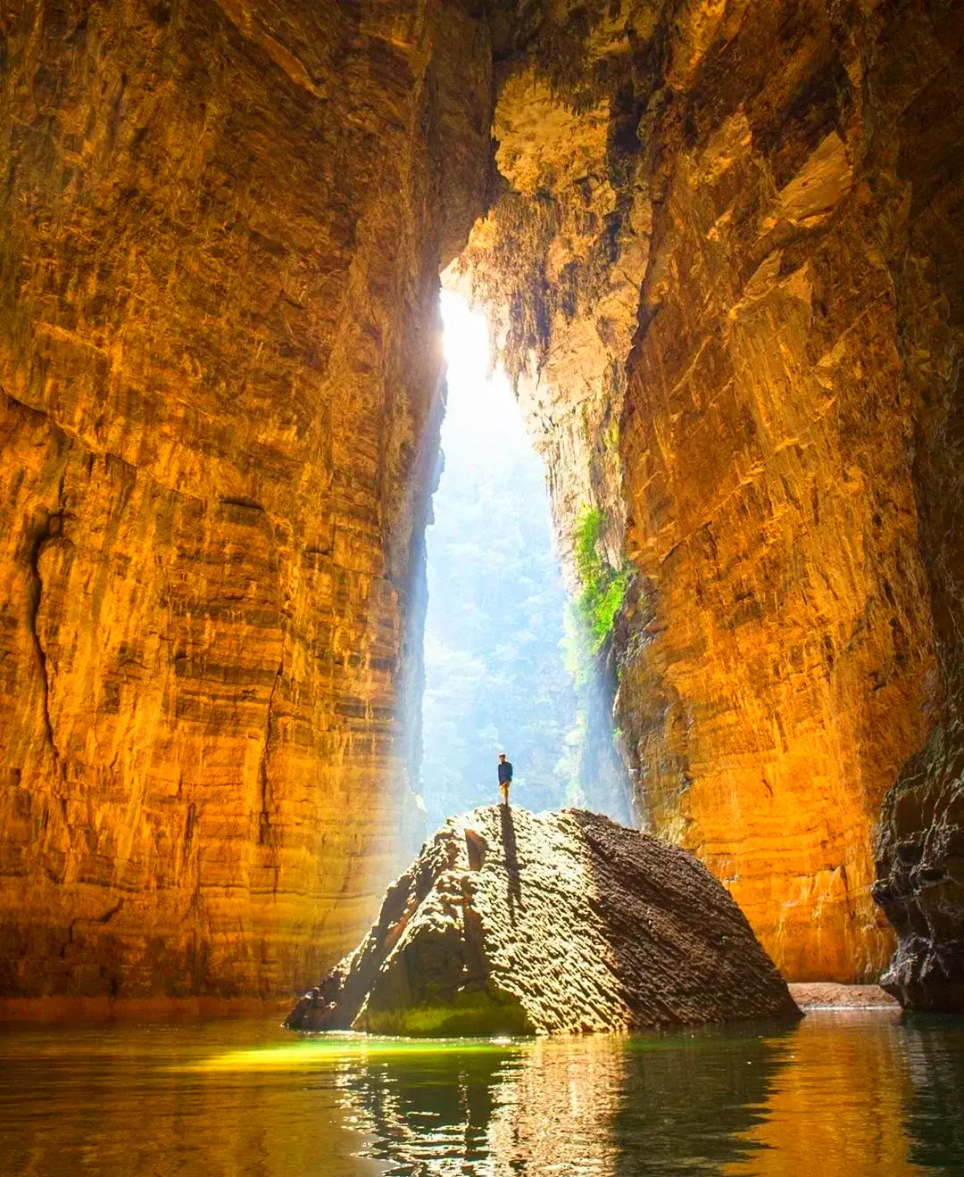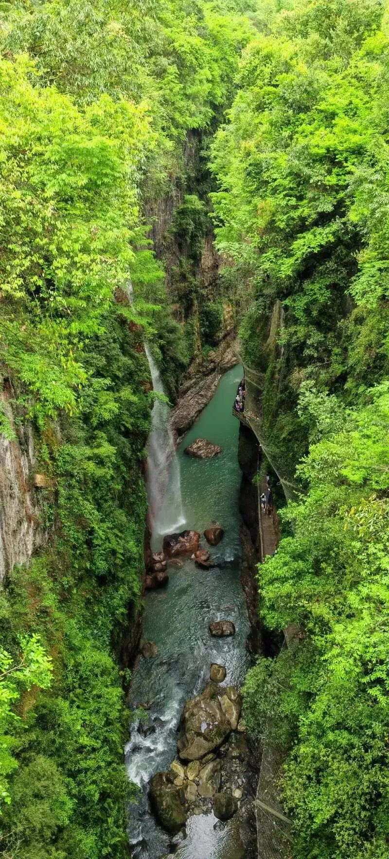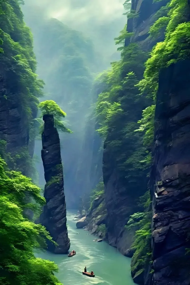 特色:因悬浮船照片爆红网络,被誉为“中国仙本那”。峡谷深百余丈,河水清澈如翡翠,小船行于其上宛如悬浮空中。