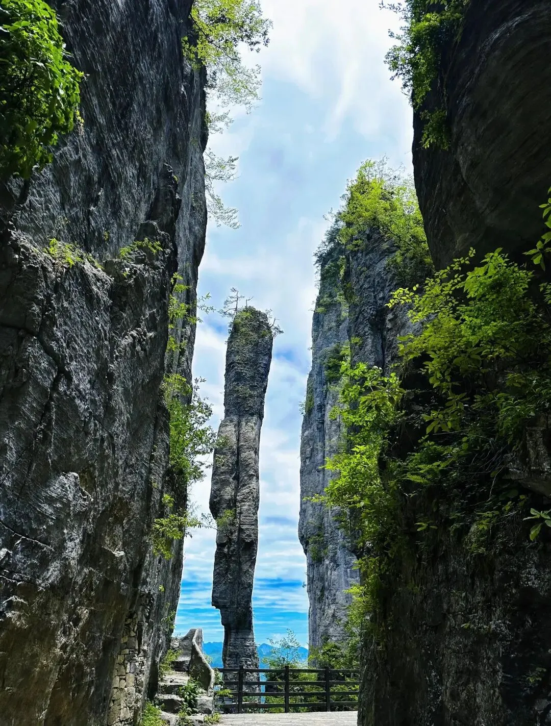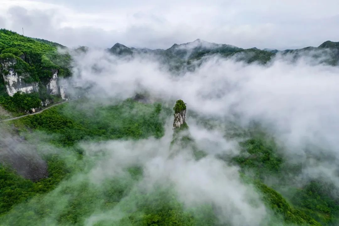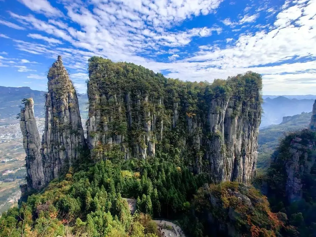 七星寨:徒步攀登“一炷香”(高约150米的独立石柱)、绝壁栈道,俯瞰百里绝壁与云海。