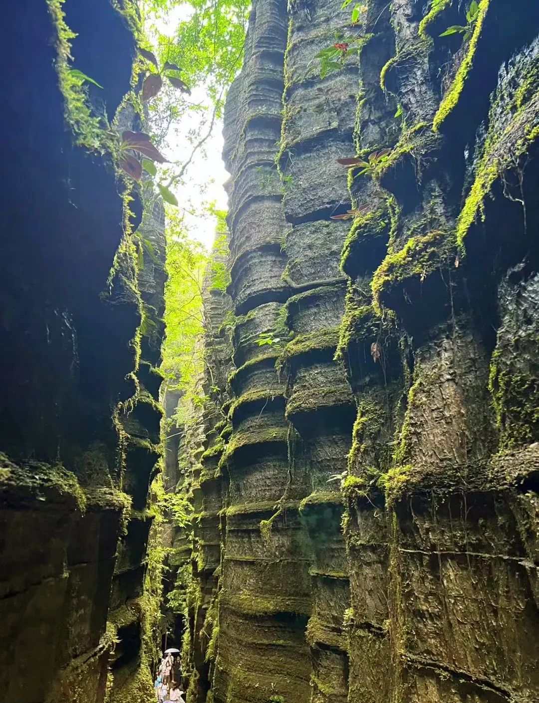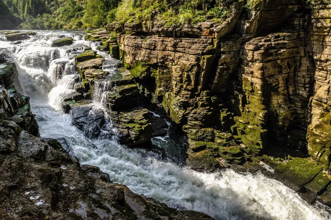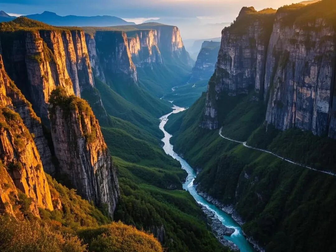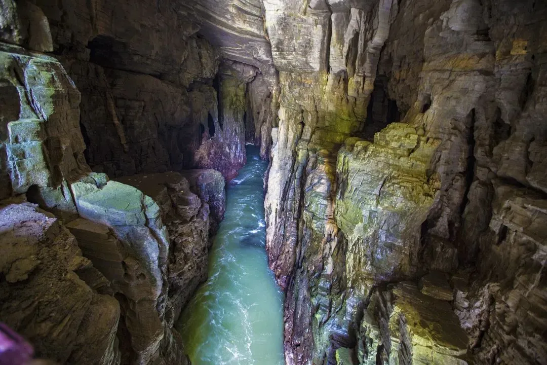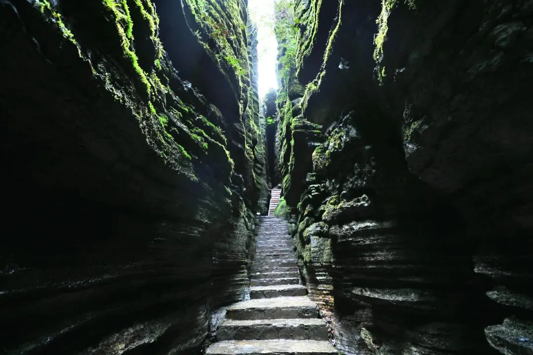 云龙地缝:被称为“地球最美伤痕”,两侧峭壁如刀削斧劈,底部溪流潺潺,阳光斜射形成奇妙光影。