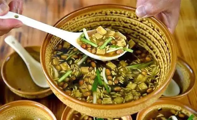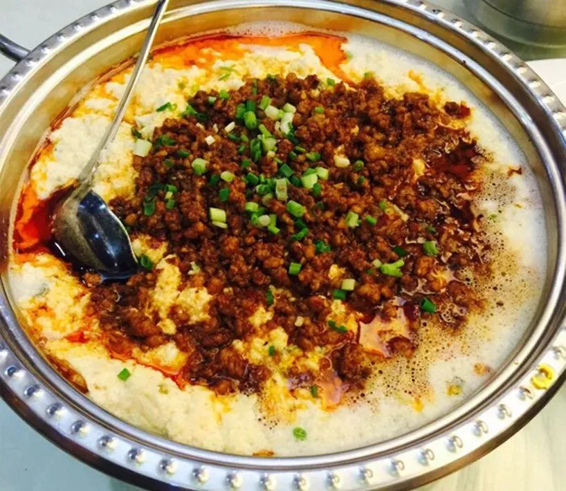 11、 肉沫合渣:恩施版“豆乳奶酪”,黄豆磨成糊糊,加肉沫和野菜熬煮,口感像豆腐脑但更香浓。
