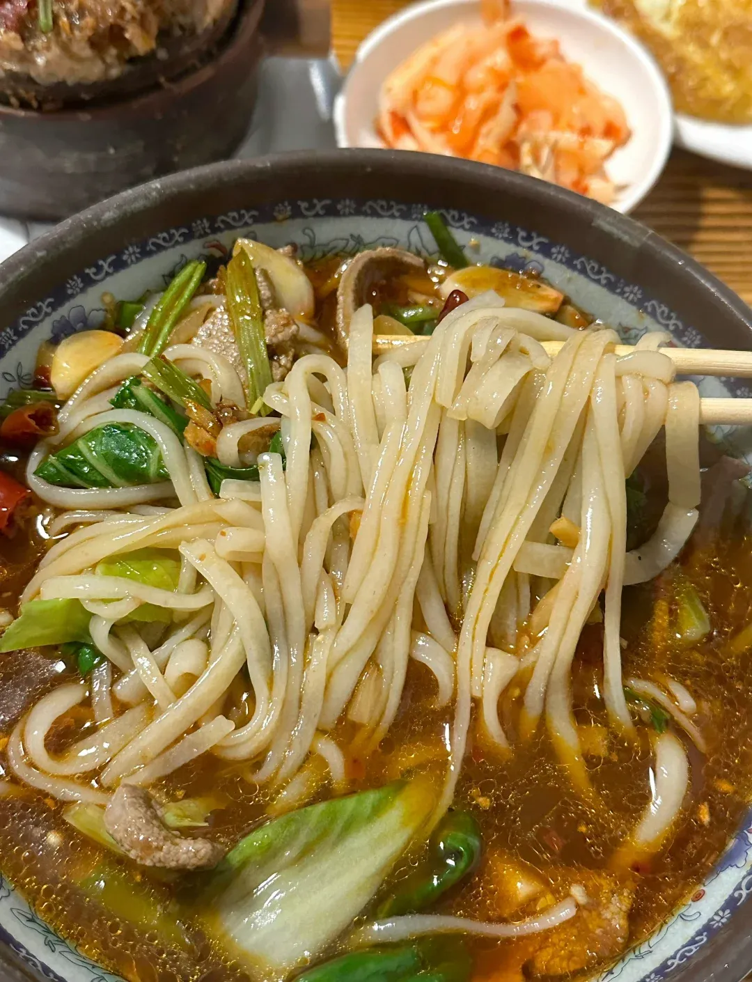 8、 恩施豆皮:米制品似宽粉,搭配肉丝、青菜,是恩施人的日常早餐。