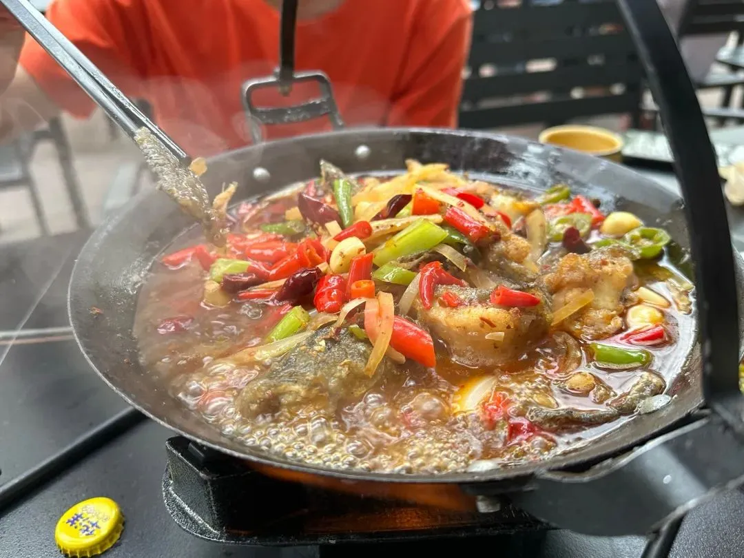 10、吊脚鱼锅:青江淡水江团鱼现杀现煮,汤底以番茄、野菜、土鸡高汤熬制,鱼肉嫩滑,汤汁鲜美。