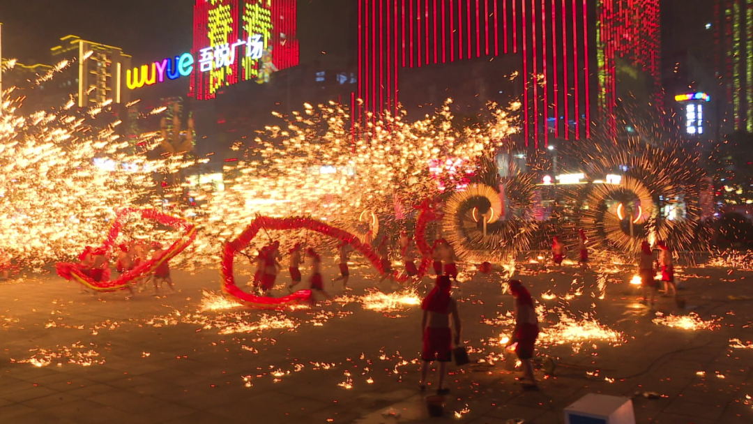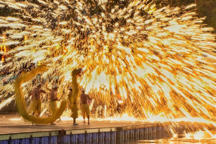 “火龙灯舞”由国家级非遗传承保护机构龙狮俱乐部在龙潭湖码头表演展示,铁花冲破夜空,尽情绽放,犹如春风吹开千树银花,又像繁星雨点般洒落。这不仅仅是一场视觉盛宴,还承载着浓厚的年味和传统文化的魅力,代表着繁荣、吉祥和好运。