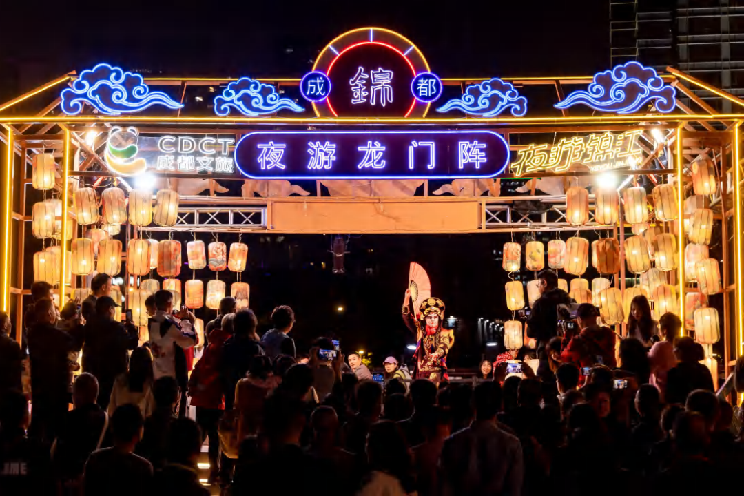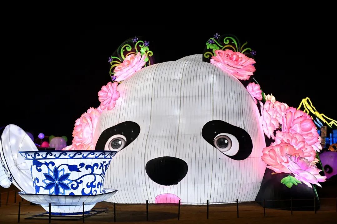 夜幕初降时,国宝熊猫、芙蓉花、川剧脸谱等特色灯组齐齐点亮现场。“安逸熊猫”点亮万家灯火,“蜀国英雄团”再现五虎上将威武雄姿,走进“秘密花园”,看“花蕊仙子”谱写一段爱的罗曼史,用“盖碗龙”沏茶,摆“成都老行当”的龙门阵……
