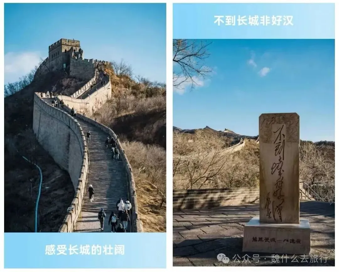 “不到长城非好汉”,乘缆车登顶北八楼,打卡“好汉碑”,徒步北段人少景美,全家可共同感受长城的雄伟壮阔,冬季雪景更添苍茫之感 。