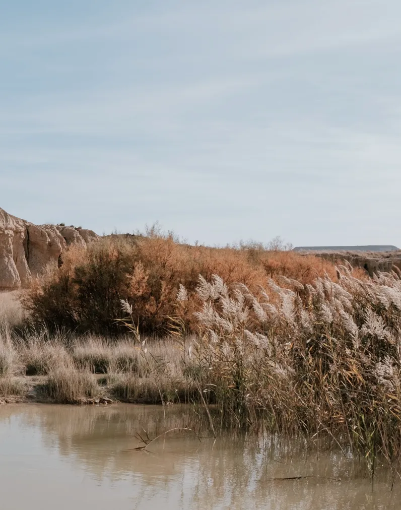 尽管环境干旱,Las Bardenas却并非一片死寂。耐旱的灌木和草本植物在荒原上顽强生长,构成了独特而脆弱的生态系统。野兔、狐狸和野猪在这片土地上活动,而抬头望向天空,常常能看到秃鹰、红隼和鸢在高空盘旋。到了春季,荒漠间还会零星绽放野花,柔和的色彩点缀在灰白的地貌之中,让这片荒原多了一分意外的温柔。