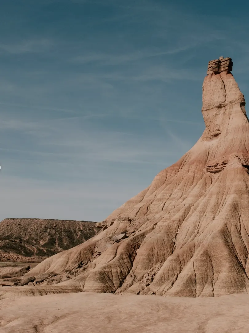 Las Bardenas是小众旅行者的探险天堂。你可以徒步穿越平原和沟壑,骑马或骑行感受荒漠的自由,甚至尝试越野车探险。无人区的空旷和静谧,让你完全沉浸在自然与孤独的体验中,是拍照和创作的绝佳场景。