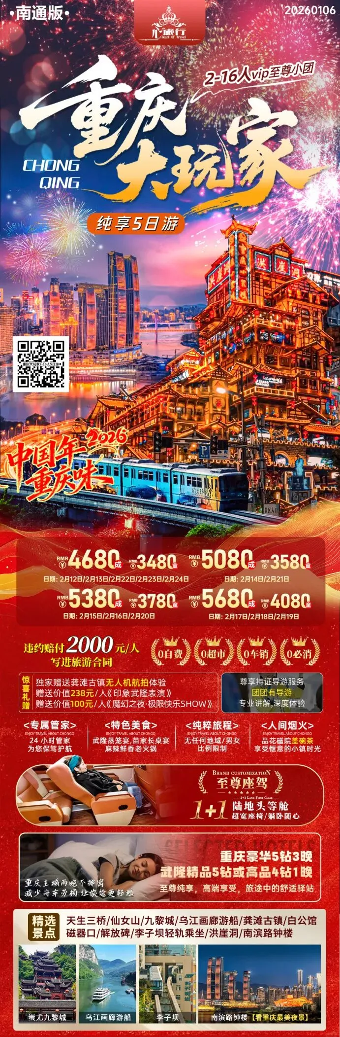 【重庆大玩家】2-16人VIP至尊小团纯享5日
