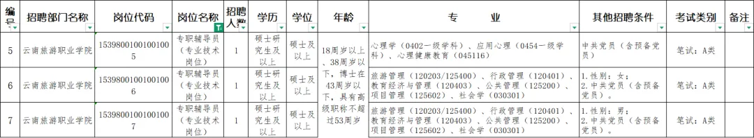 云南旅游职业学院公开招聘人员14名。具体招聘岗位及招聘条件,详见《2026年上半年云南旅游职业学院公开招聘人员计划表》(附件1)。