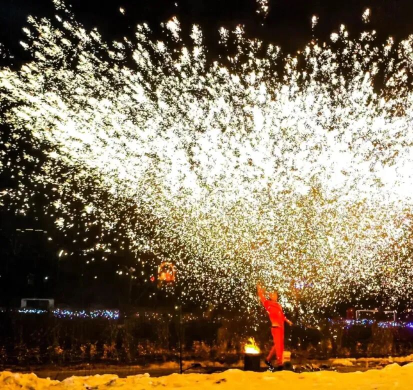 最后前往「烟火广场」。占位时不必挤在最前排,建议选择后方台阶高处。此处既可无遮挡拍摄全景,又能避免烟花碎屑飘落,观感与体验俱佳。