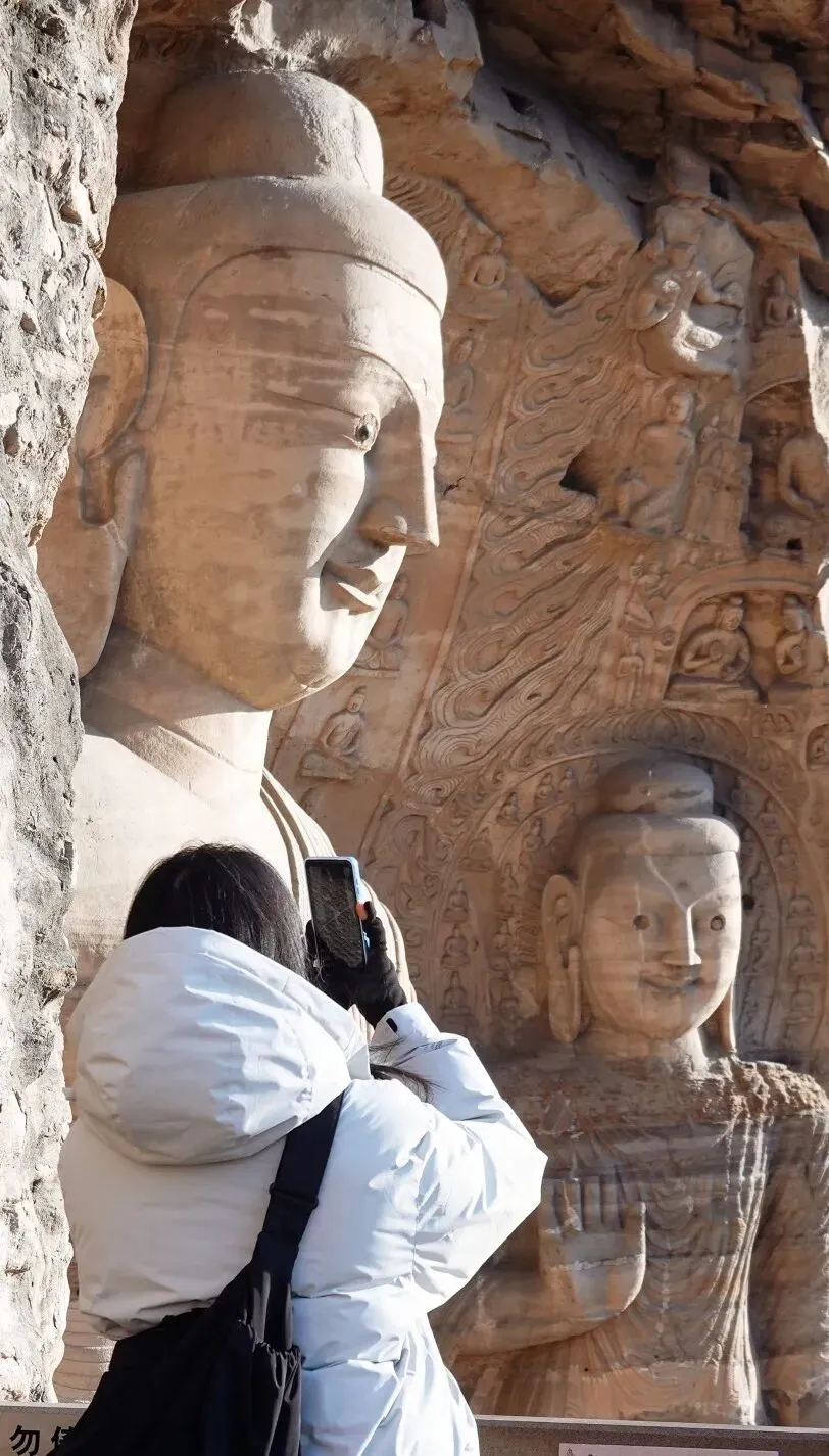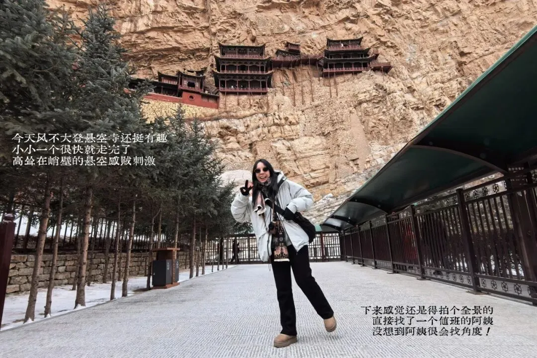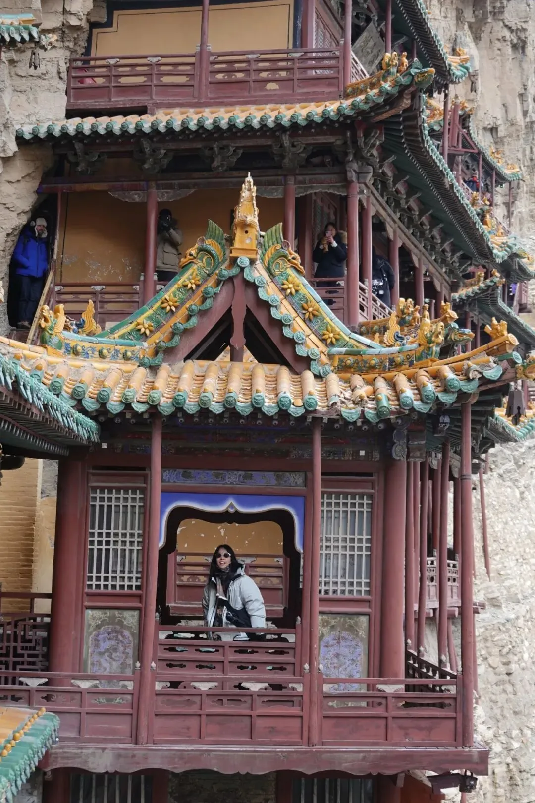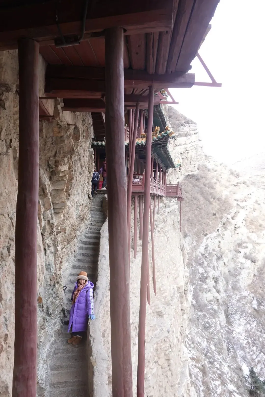 爬悬空寺的时候没感觉多冷,倒是走出来去停车场的路上风吹的眼睛都快闭不上了,能别这个时候去还是避开一下吧。