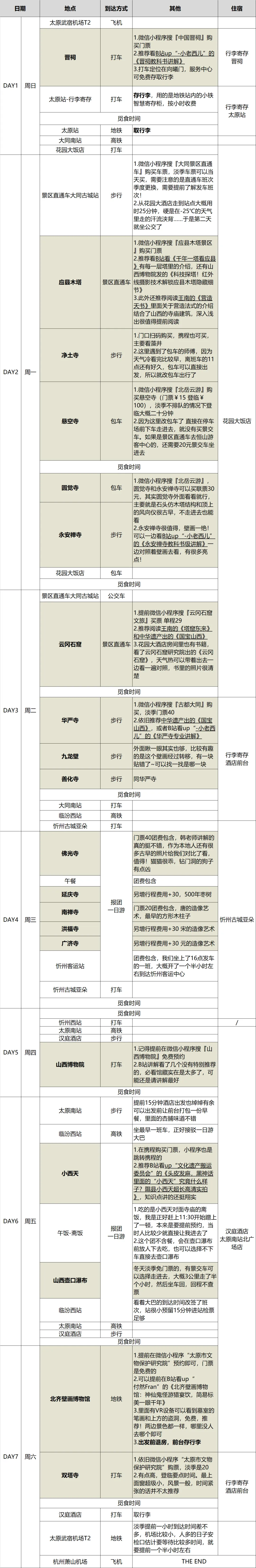 @标注周几的原因是博物馆和佛光寺这几个地方周一闭馆