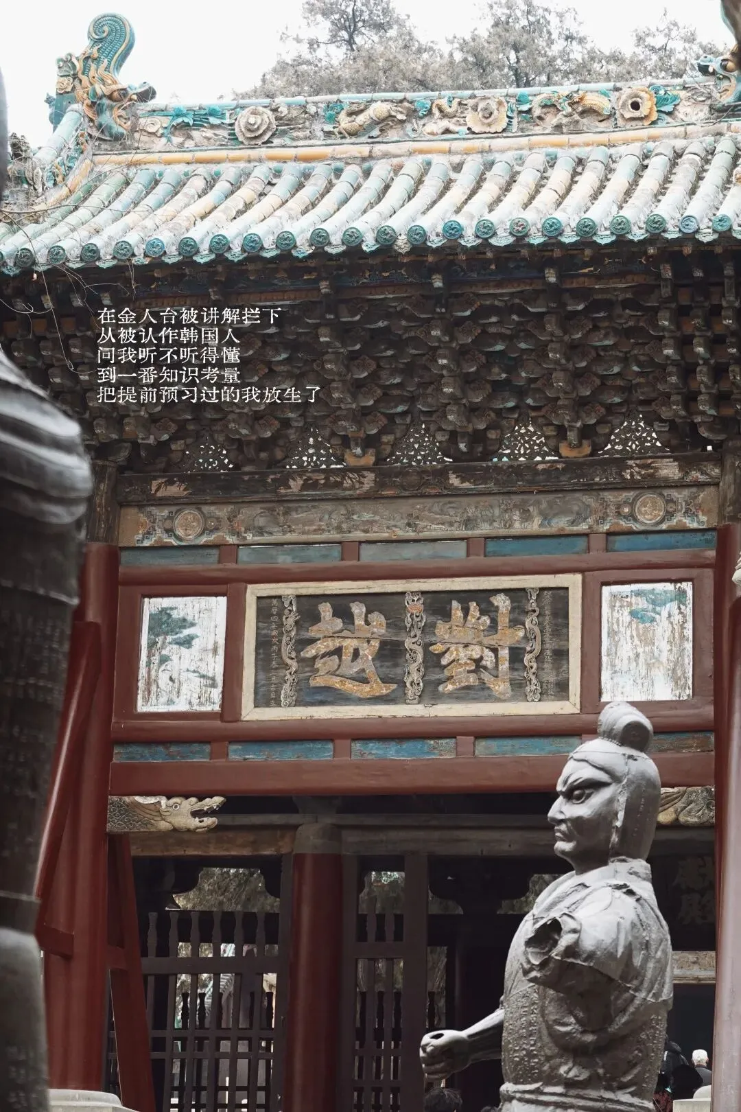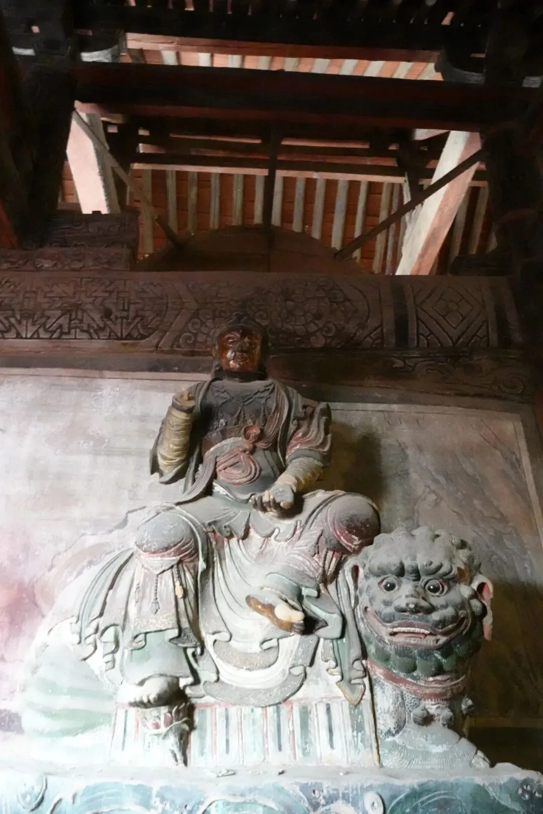 延庆寺是金代建筑,看点是它两边的墙是斜出来的,以及门柱上的面具。这一路猪脑有点过载,现听现记能记下来的实属不多,不怪老师强调课前预习,我之前预习到的点就会记得很牢……