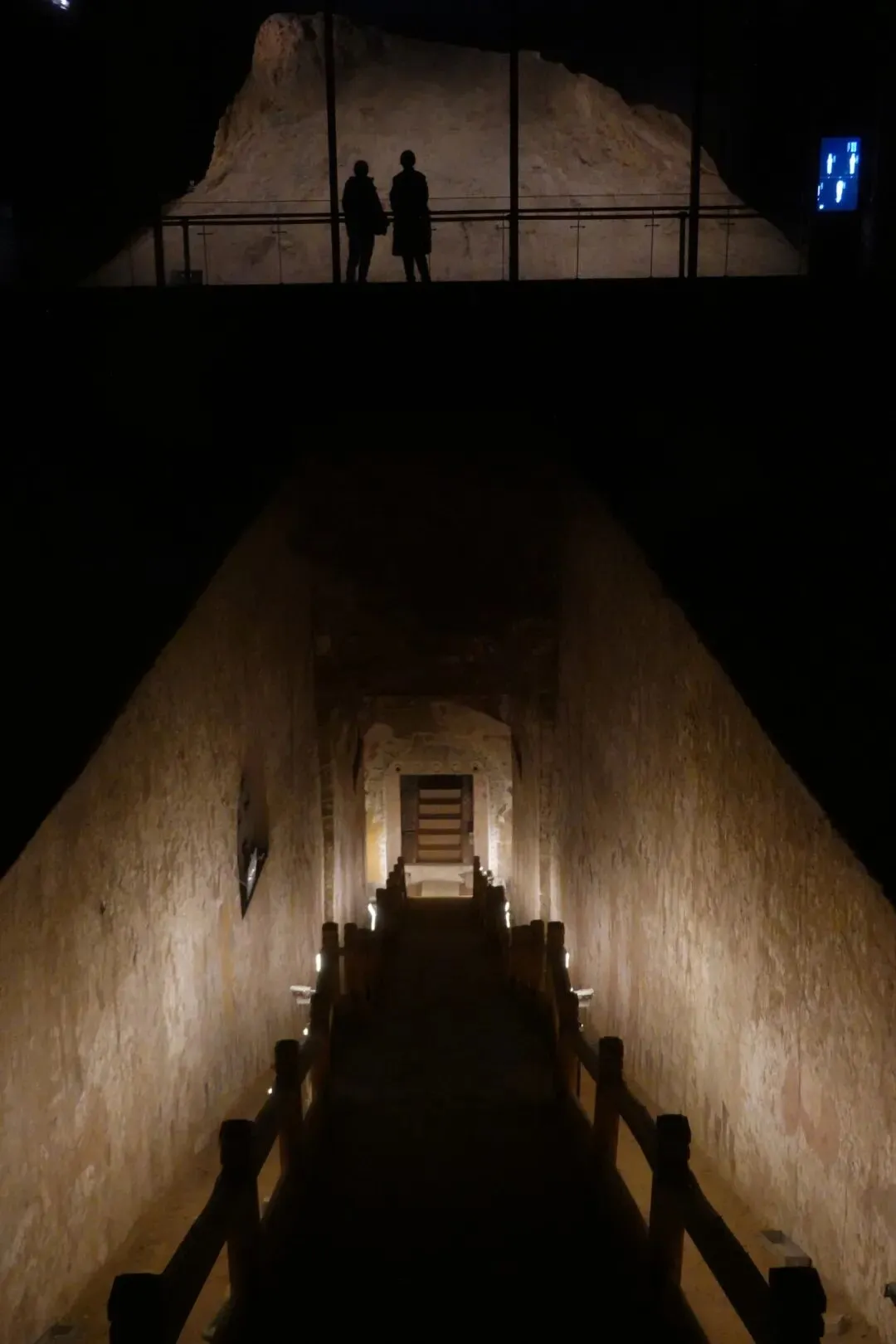 山西博物院里应接不暇的国宝级文物,北齐壁画博物馆里简易标美一眼千年的壁画,人类与神鬼济济一堂,建立在墓室之上,带上现代的VR设备,抬头是盗洞,前方是壁画,身临其境。