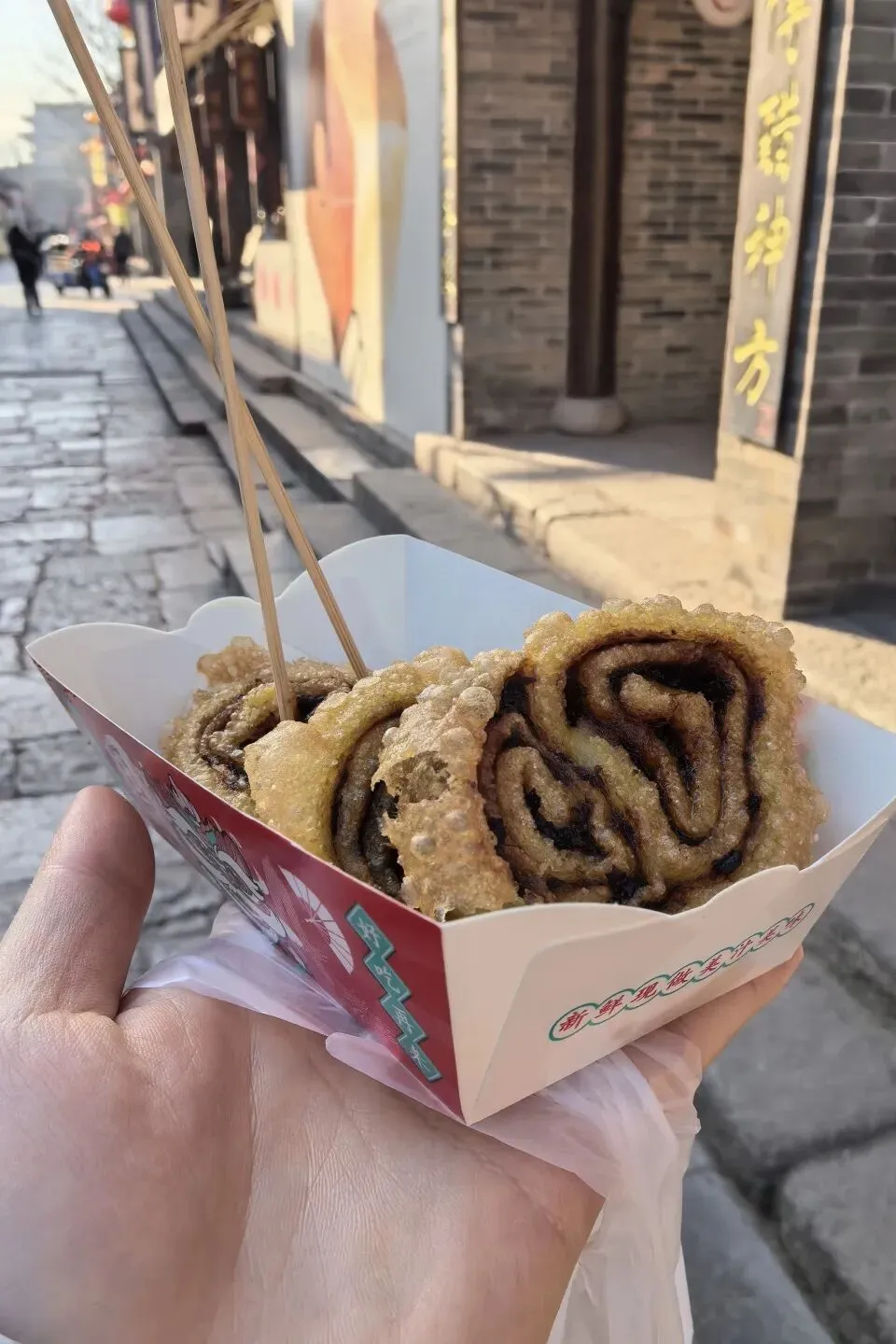 一脑子都是知识真的非常的消耗热量,于是回到忻州古城,准备大吃特吃(bushi。忻州古城很新,但两三条横竖相交的美食街名副其实,量大实惠,明码标价,可选择项众多,属于带三个胃都吃不重复的地步。
