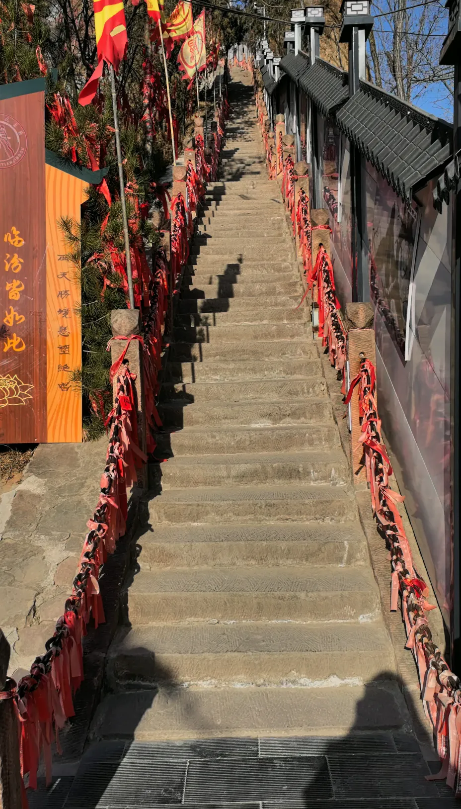 悬空寺进去是15元,登上去要再花100元买登临票(淡季不用抢,旺季需提前抢购),大多数不恐高的中国人都秉持着来都来了的价值观,走过长长的阶梯来到这个儒释道三合一的“天宫”。