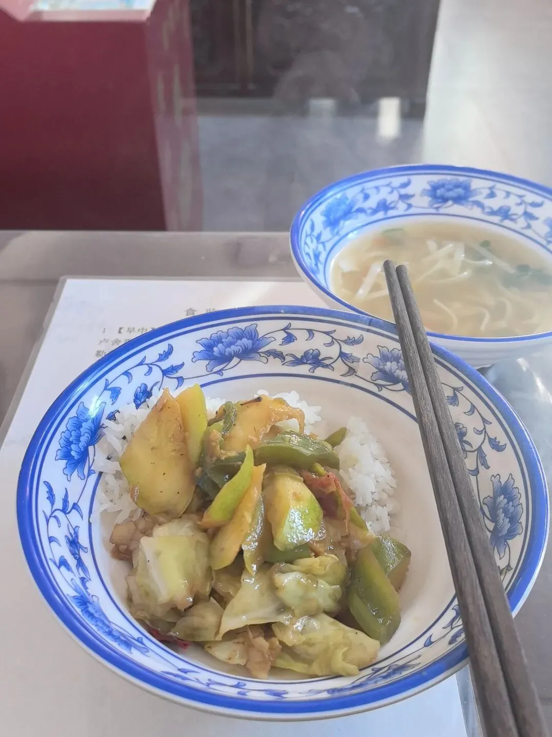 好在我还有点旅游运,也许是因为淡季人少,斋饭量不多,但还够两个突然冒出来的女生吃一餐。是的,我又在吃饭的地方遇到了吃饭的搭子,一合计集合时间,嘿还是同一车的。