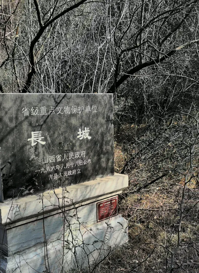 于是我俩就没坐景交车,进去还有3公里多一点的路程,我们走了大概40分钟消磨时间,路上还看到长城的保护界碑,但长城估计是坍塌风化了。