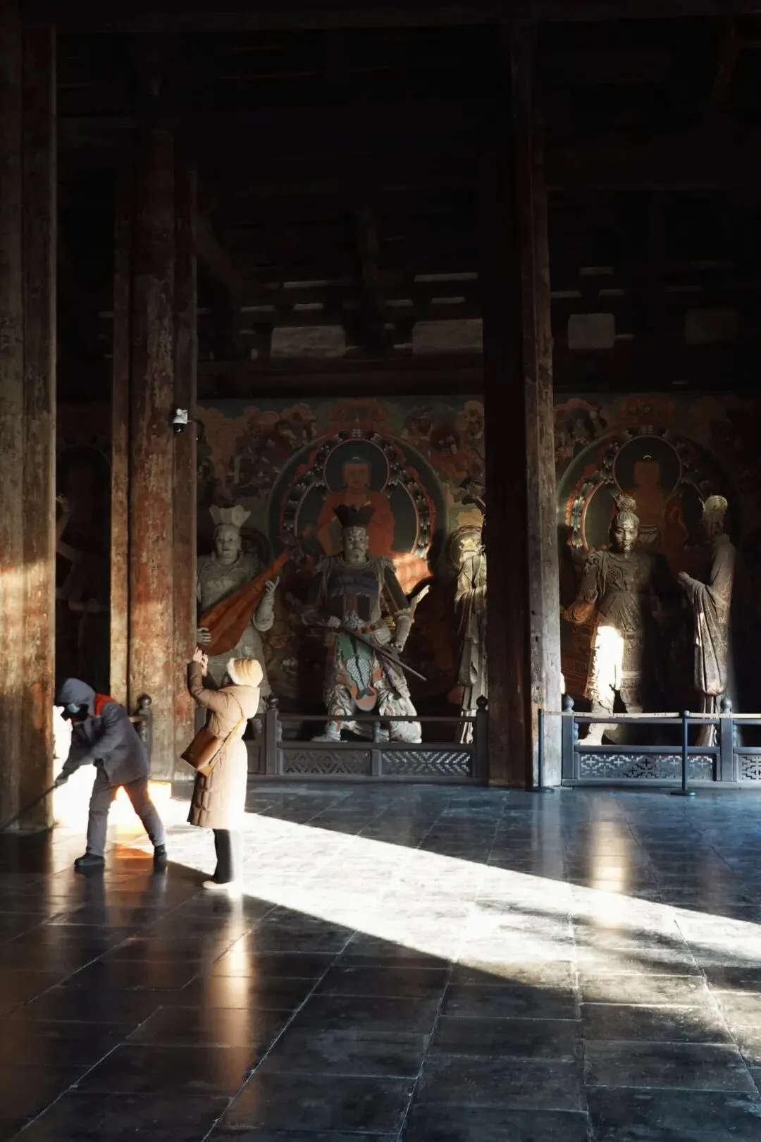 出来玩不怕冷,但真的很怕人挤人。以前都是在元宵节后的时间段出门,现在正巧碰上了淡季中的淡季,我可以在永安禅寺承包一整个大殿,和看殿的阿姨随便聊几句天,可以在华严寺找到一个又好又安静的机位,不打扰别人也不被打扰。