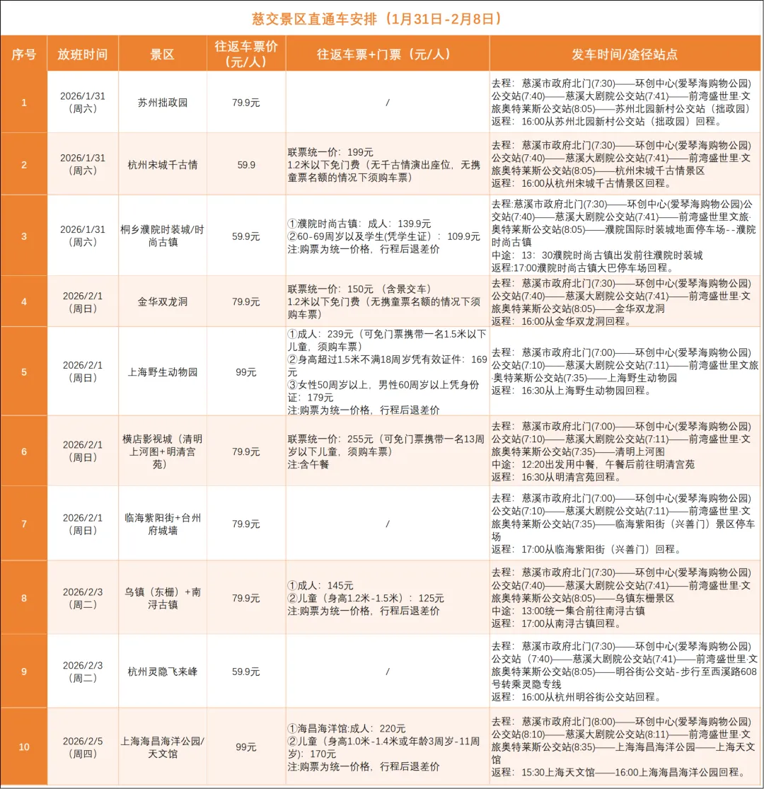 【寒假出游指南】慈交景区直通车带你“一步到位”畅玩假期!